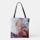 This tote bag captures the essence of Spring with its artful design. The fabric, a canvas of soft, durable quality, serves as the perfect medium for the highlight of the piece: a painterly iris, blooming vividly in shades of purple and white. This iris mirrors the stroke of an artist's brush, blending hues of lilac, lavender, and deep violet with touches of pristine white. The tote's handles, crafted from the same sturdy material, promise comfort and practicality, making it not just a piece of art but a companion for everyday errands or a spontaneous spring outing. The overall effect is one of elegance and freshness, a tribute to the beauty of Spring encapsulated in a functional accessory that stands out for its artistic charm and utility.