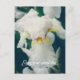 Elegant white postcard featuring a photo of iris, covered with raindrops. Please, personalise it, adding your own message and a "stamp" (little picture on the backside). For further modifications (font style, font colour, text position) click "Edit design”.