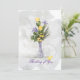 A bouquet of Iris and Yellow Roses with a background of watercolor swirls decorates your card with a tiny bird sitting on a ribbon which swirls around the bouquet. You can change the card to say Thank You or anything that you wish to say to the one who receives your card.