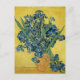 Irises (1890) by Vincent van Gogh is a captivating still life that features a vibrant bouquet of purple irises displayed in a vase against a bright yellow background. The dynamic composition highlights Van Gogh's mastery of complementary colours, creating a striking contrast between the vivid purple flowers and the warm yellow tones. The artist’s expressive brushwork and attention to detail bring the irises to life, showcasing their delicate petals and natural elegance.