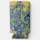 Irises (1890) Vincent van Gogh. Lovely positive still life. Large yellow vase with a bouquet of blue irises on a yellow background. Reproduction of famous works of art images in the public domain.