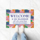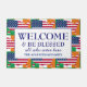 IRISH AMERICAN Family Welcome Doormat with CUSTOMIZABLE TEXT. Stylish, patriotic WELCOME Doormat with the wording WELCOME & BE BLESSED ALL WHO ENTER HERE plus placeholder name. The background is the flag of IRELAND with the map outline of the flag of the UNITED STATES in an all-over tiled pattern. All text is CUSTOMIZABLE so you can amend the wording to suit your needs, eg. add family name, family motto, inspirational quote.