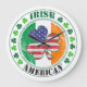 Stars and Stripes in shamrock style with “Irish American.” Unique combination of American and Irish flags to show patriotism and pride of two cultures.