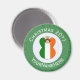 Round magnet for Christmas decor featuring an angel dressed in the Flag of Ireland, with green shamrocks for eyes. The angel is found inside a white fractal circle of squiggly squares with a background of green squiggly squares. Add your own text, if you wish. Personalise with a name and customise with the year. Fun stocking stuffer. Share your Irish heritage during the holiday season.