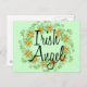 This beautiful Irish design features the caption "Irish Angel." The background is a wreath of green shamrocks and orange and green flowers.