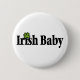 Irish Baby printed in black on button with four leaf clover dotting the 'i'