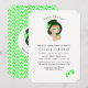 Irish themed baby shower invitations for all those Irish pregnant ladies in traditional green colours of Ireland with the cutest little baby in a leprechauns tall top hat decorated with a lucky shamrock leaf.