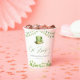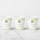 Serve drinks in festive Irish style with these personalized St. Patrick’s Day baby shower paper cups, featuring soft watercolor shamrocks, green bunting, and a charming leprechaun top hat. Customized with the baby shower name and event date, these cups add a coordinated and stylish touch to your drink station, dessert table, or party place settings.