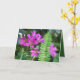 Irish blessing thank you from the family, funeral thank you cards. Pink clover flowers and fern greenery image on the front with white text templates. “Thank you from the family of - name”. Inside, personalise with a thank you message in white script over dark green. At the top is the traditional Irish blessing, "May the road rise up to meet you. May the wind be always at your back. May the sun shine warm upon your face; the rains fall soft upon your fields and until we meet again, may God hold you in the palm of His hand.” which you may use, change, or delete. This card is also available as an instant download to send digitally.