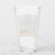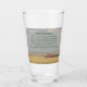 Pint glass for beer and other cold beverages that features a rural farming photo image of golden wheat fields and a red barn along with a traditional Irish blessing printed in green Celtic style lettering.