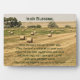 Decorative 7 x 5 inch plaque with hinge that features the photo image of a farm field full with bales of hay along with a traditional Irish blessing printed in green, stylised script.