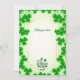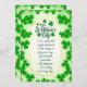 Visual Elements: The card features numerous green shamrocks, including a heart shape made of shamrocks near the top center. The overall color scheme is green and gold.