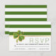 This lovely wedding RSVP response card features Irish clover or shamrocl leaves and a green and white striped pattern. Your text is on a white band with a gold stripe. It is perfect for a Saint Patrick's Day wedding.