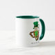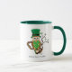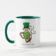 Cute owl wearing a green leprechaun top hat with two clovers in it.