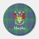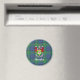Stylish round magnet with Irish County Donegal tartan plaid pattern and the official coat of arms in center. Personalize with name or monogram with customizable white text.