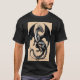I give wanted to give this a 4 instead of a 5 because these Basic DARK T0shirts run unexpectedly SLIM or Narrow. Which is great if you do not have a potbelly, but I have a paunch. It isn't the shirt's fault that I've got a beer belly. The design and shirt itself is a quality cotton shirt. The color is more of a deep purple, but still a very pretty color. The Basic DARK T-shirts run a bit SLIMMER than the Basic Ts. The neck is a fraction narrower (or seems to be narrower) also. I'm a paunchy middle-aged woman and my neck is 12 inches (31cm) thick and the neckline fell about the same as in the photo of the man, and I had the desire to tug it a bit. So if you're a thick necked man or like loose shirts, be aware these are slimmer shirts. Once I get rid of my lockdown paunch it'll look great. The shirt washed well in cold water with no apparent bleeding. We don't have a dryer, so it hung dry. Did not shrink. Love the colors and the design. The design looks smaller on my shirt than it does on the model on-line. But still, it looks good on the shirt. The printing looks as it does on the model, just the size seems fractionally smaller. Washed garment in cold water, hung dry and design appeared unaffected.