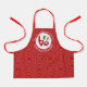 Personalised kids apron with the Irish LOVE FLAG. The word LOVE, using a heart shaped Irish flag as the O, is featured in red letters inside a white, fractal circle of squiggly squares. The circle sits on a red, fractal background, also, of squiggly squares. Great for grown ups at your next occasion or party to celebrate the Emerald Isle. Can be customised for any occasion.