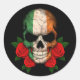 Irish Flag Skull with Red Roses Classic Round Sticker