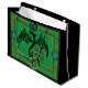 Tribal black dragon with green Celtic knot work wings. Shades of green Celtic knot work all behind and around the dragon and four leaf clover.
