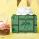 Tribal black dragon with Celtic knot work wings. Shades of green and Celtic knot work all behind and around the dragon and four leaf clover