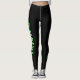 Customisable black background and the right leg has the text "Irish" in large bold grunge style lettering and a green shamrock. The left leg has a shamrock on the lower outer area. Cute fashion choice for St Patrick's Day casual wear and parties.