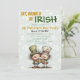 A playful St. Patrick’s Day invitation with lively Irish‑themed illustrations and a shamrock‑filled backdrop. All text and elements are customizable, and the matching patterned reverse side completes the design.
