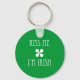 Green keychain that says "KISS ME I'M IRISH" in white with white clover.