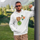 Level up your holiday gear with this funny cow on earth hoodie for men. Featuring a cartoon cow decked out in traditional Irish accessories, this sweatshirt is built for comfort and style. The unique illustration of a heifer holding a shamrock while standing on the world globe makes it a standout piece for those who appreciate quirky farm animals and festive themes. Great for layering on cold mornings or wearing to a parade, this durable pullover is a must have for any fun loving guy.
