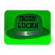A shot of a Green Derby Hat close up with Irish Luck on it