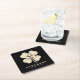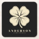 Irish Lucky Four Leaf Clover with Name Black Square Paper Coaster