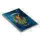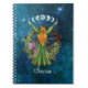 Beautiful watercolor illustrated notebook features moon goddess in emerald green gown with flaming red hair on celestial skies background. Customisable with script text in white