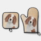 Irish Red and White Setter Painting Original Art Oven Mitt & Pot Holder Set