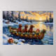 Bring energetic, stunning red charm to your holiday season with this beautiful Irish Red Setter Christmas design! This magical scene features three handsome, richly coated Irish Red Setters sitting gracefully in a cozy wooden boat, gently floating on a serene snowy lake at sunset. The boat is beautifully adorned with glowing Christmas string lights and fragrant pine garlands, while the dogs wear festive scarves. They are surrounded by colorful wrapped presents and cheerful holly branches. Soft snowflakes gently fall, and the shimmering reflection of the lights on the water creates a truly magical winter holiday atmosphere. This design is a perfect Christmas gift for any Irish Red Setter owner, dog lover, or admirer of festive and devoted sporting dog art, capturing the serene joy of the season.