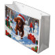 Irish Red Setter Running Snow with Christmas Hat Large Gift Bag