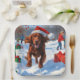 Irish Red Setter Running Snow with Christmas Hat Paper Plate