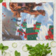 Irish Red Setter Running Snow with Christmas Hat Tea Towel