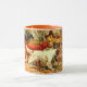 Irish setters spotting their hunting catch in the fall surrounded by brilliant fall foliage in this vintage illustration.