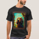 I give wanted to give this a 4 instead of a 5 because these Basic DARK T0shirts run unexpectedly SLIM or Narrow. Which is great if you do not have a potbelly, but I have a paunch. It isn't the shirt's fault that I've got a beer belly. The design and shirt itself is a quality cotton shirt. The color is more of a deep purple, but still a very pretty color. The Basic DARK T-shirts run a bit SLIMMER than the Basic Ts. The neck is a fraction narrower (or seems to be narrower) also. I'm a paunchy middle-aged woman and my neck is 12 inches (31cm) thick and the neckline fell about the same as in the photo of the man, and I had the desire to tug it a bit. So if you're a thick necked man or like loose shirts, be aware these are slimmer shirts. Once I get rid of my lockdown paunch it'll look great. The shirt washed well in cold water with no apparent bleeding. We don't have a dryer, so it hung dry. Did not shrink. Love the colors and the design. The design looks smaller on my shirt than it does on the model on-line. But still, it looks good on the shirt. The printing looks as it does on the model, just the size seems fractionally smaller. Washed garment in cold water, hung dry and design appeared unaffected.