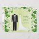 Irish shamrock (clover) Couple's Wedding Shower invitation with tuxedo and wedding gown