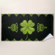 Irish Shamrock Four-leaf clover with celtic decor Beach Towel