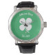 At the heart of the design lies the emblem of Ireland, the iconic Shamrock, delicately placed at the centre of the watch face. Surrounding the Shamrock is a vibrant green hue, reminiscent of the lush Irish countryside, adding a touch of vibrant colour to the design. Above and below the Shamrock, you have the freedom to personalise the text, whether it's a couple's initials, a significant date, or a heartfelt message.