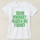 This funny St. Patrick's Day design features the slogan "Irish Whiskey Makes Me Frisky" in large green text.