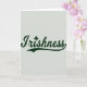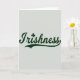 This greeting card features the single word “Irishness” centered on the front in deep forest green lettering, set against a muted silver-gray background for a calm, classic look. The letterforms sweep gently from left to right, like a friendly hand reaching across the page, and the long underline curl adds a soft, romantic sense of motion. A small three-leaf shamrock replaces the dot over the “i,” giving a sweet nod to St. Patrick’s Day ☘️. The green text sits prominently in the middle with generous open space around it, so your eyes go straight to the message without distraction. The overall palette stays simple—green on gray—yet it feels warm and inviting, like a quiet toast shared between close friends 💚. The underline flourish extends beneath the word in the same green, tapering as it stretches outward. Share St. Patrick’s Day sentiments with someone special.