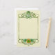 Sweet stationery with Irish theme features a lightly textured cream background with gracefully swirled green border. Irish teddy bear in hat and pot of gold with Shamrock accents.