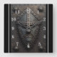 Decorate your home or office with this extraordinary timepiece featuring a mediaeval iron shield showing a spiked and riveted mask. One of a kind awesome!