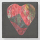 Floral shapes, make up this heart-shaped-form, in mottled colours of; pink, mauve, olive, grey, yellow, purple, and white-somewhat, resembles a woven, tapestry.