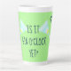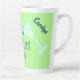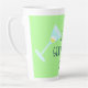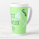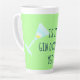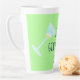 This lovely big latte mug is designed for the person who loves to drink gin and tonic. It has the words - Is it gin o'clock yet? - and can be personalised with a name. The text is navy blue on a lime green background, and the mug is decorated with two cocktail glasses of gin and tonic with ice and lemon.