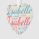 Isabelle. Show and wear this popular beautiful female first name designed as colourful wordcloud made of horizontal and vertical cursive hand lettering typography in different sizes and adorable fresh colours. Wear your positive american name or show the world whom you love or adore. Merch with this soft text artwork is a great present, not only in womens history month, or birthday gift.