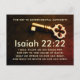 Inspirational quote scripture postcard features Bible Verse Isaiah 22:22; "I will place on his shoulder the key to the house of David; what he opens no one can shut, and what he shuts no one can open."-