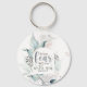 Keychain with inspirational quote scripture depicts a beautiful floral watercolor design with simple light blue and grey leaves. It features an encouraging Bible Verse Isaiah 41:10, "Do not fear, for I am with you."